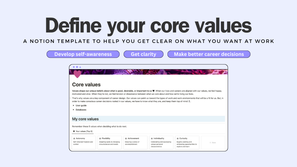 Values shape our unique beliefs about what is good, desirable, or important to us. That's why values are a key component of career design: they can point us toward the types of work and environments that will be a fit for us.
